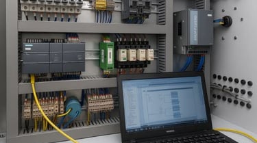 programación de controladores lógicos programables de las principales marcas: Siemens, Allen Bradley, Schneider Electric y otros. Lógica de control, secuencias de arranque y parada, interlocks de seguridad y automatización completa de procesos industriales.
