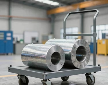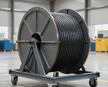 Diseñado para el transporte y posicionamiento de bobinas de cable, rollos de lámina, rollos de papel o cualquier material en formato circular. Con ejes o soportes laterales según el diámetro de la bobina. Estructura reforzada para cargas pesadas.