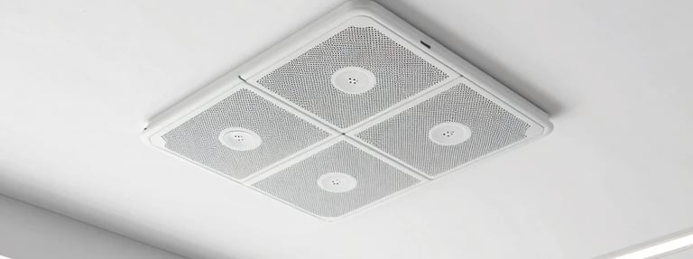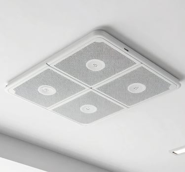 Sistema de sonido integrado en techo con música programada según el perfil de tu cliente y el momento del día. El ambiente sonoro correcto aumenta el tiempo de permanencia.