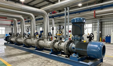 Suministro, instalación y mantenimiento de sistemas de bombeo para agua potable, aguas residuales, combustibles, productos químicos y fluidos de proceso. Incluye bombas centrífugas, de desplazamiento positivo, sumergibles y de vacío. Cálculo hidráulico incluido.