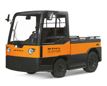 Vehículo eléctrico o de combustión diseñado para jalar trenes de carros cargados. Capacidad de arrastre desde 2.000 kg hasta más de 10.000 kg según el modelo. Con asiento para el operador, freno de servicio y enganche para los carros del tren. Silencioso, limpio y eficiente.