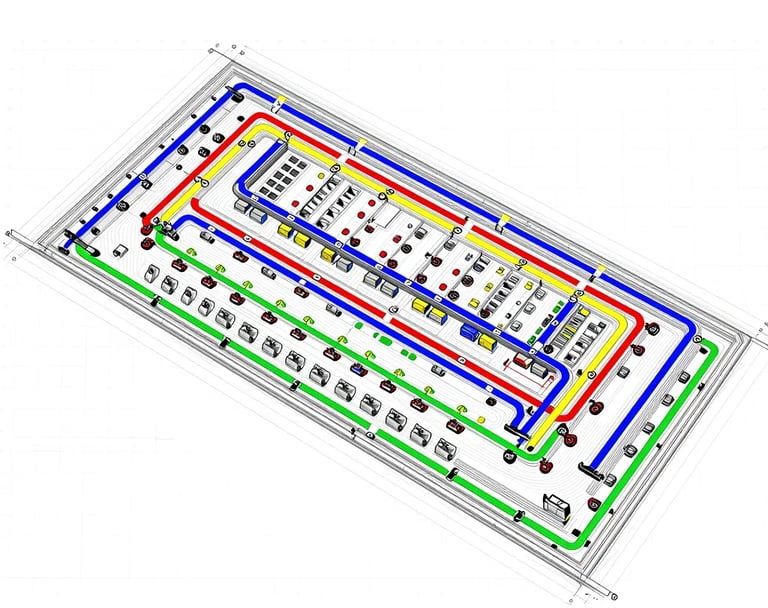 Diseño de las rutas óptimas de abastecimiento, frecuencias de paso, tipos de carros para cada material y sistema de señalización en planta. Implementamos el sistema completo incluyendo la capacitación del personal y el establecimiento de los estándares de operación.